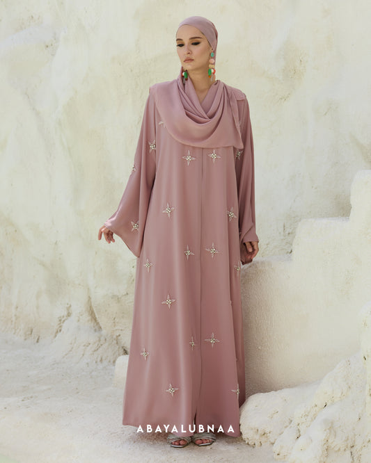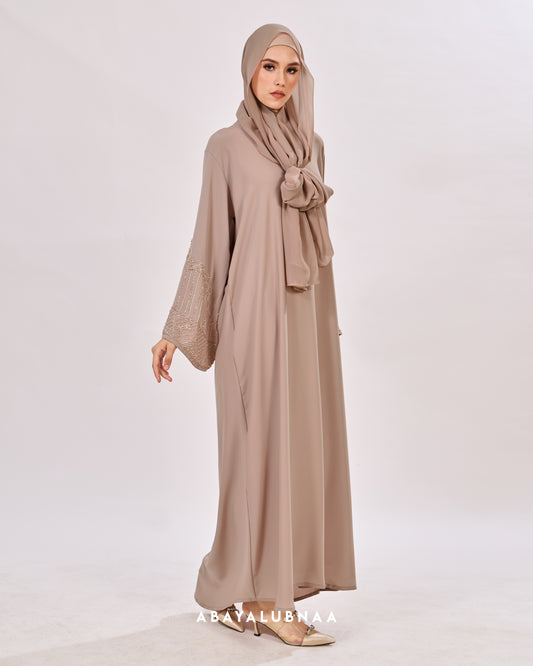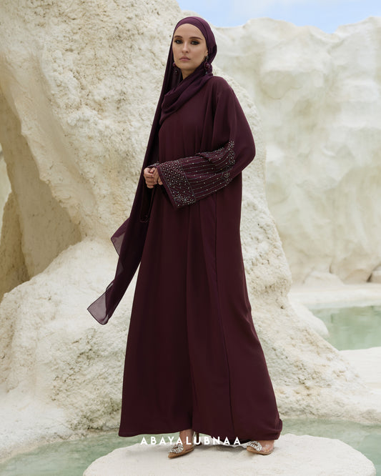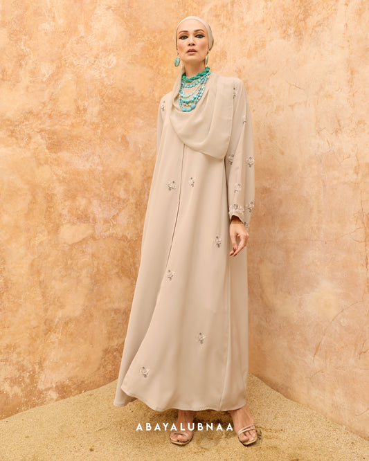 Luxurious and decadent, Tasnim, Nasreem and Layla Reinterpreting the traditional Moroccan silhouette, this modern abaya brings the beauty of botanicals to life in a contemporary fashion.