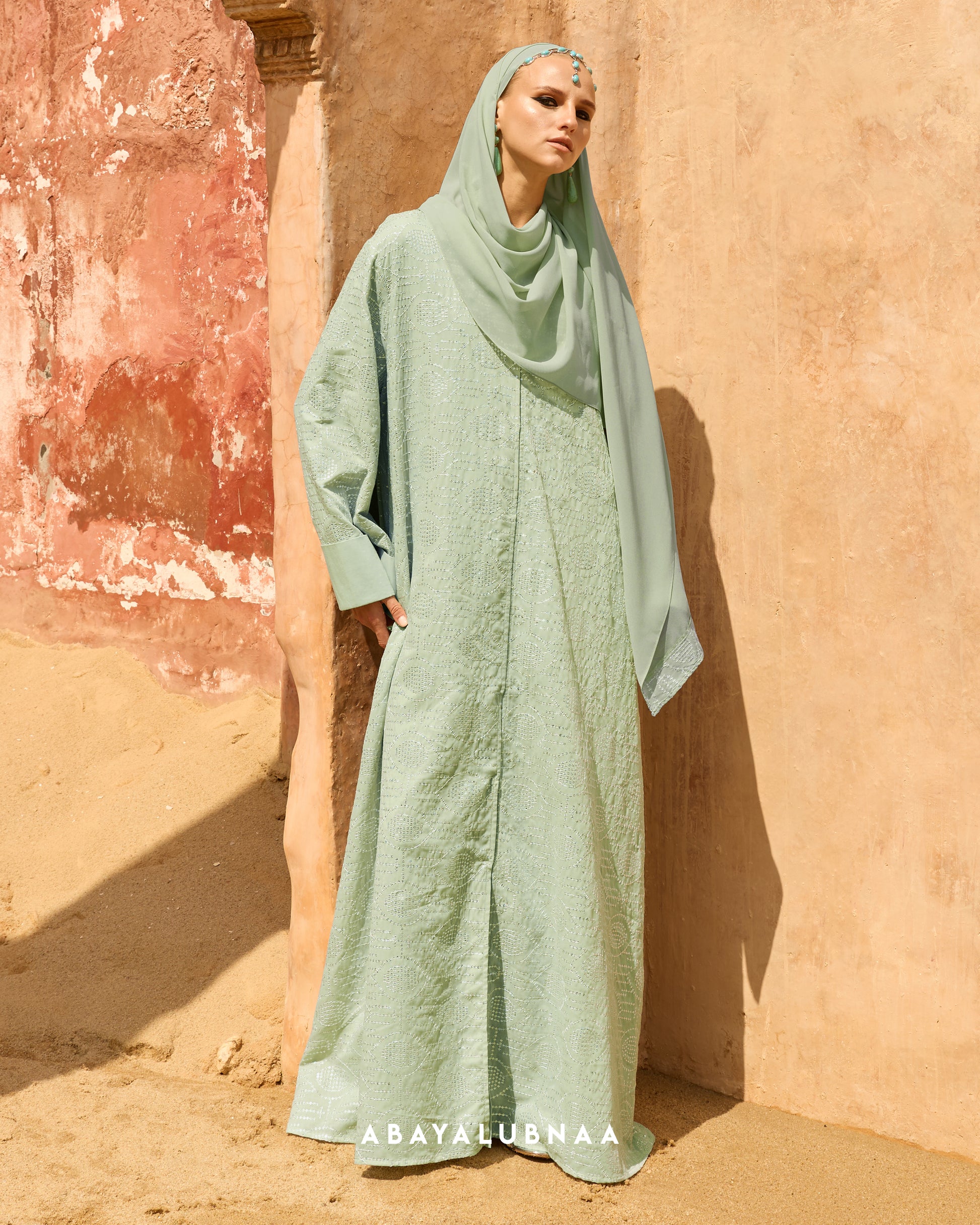 Basma Abaya in Sage Green