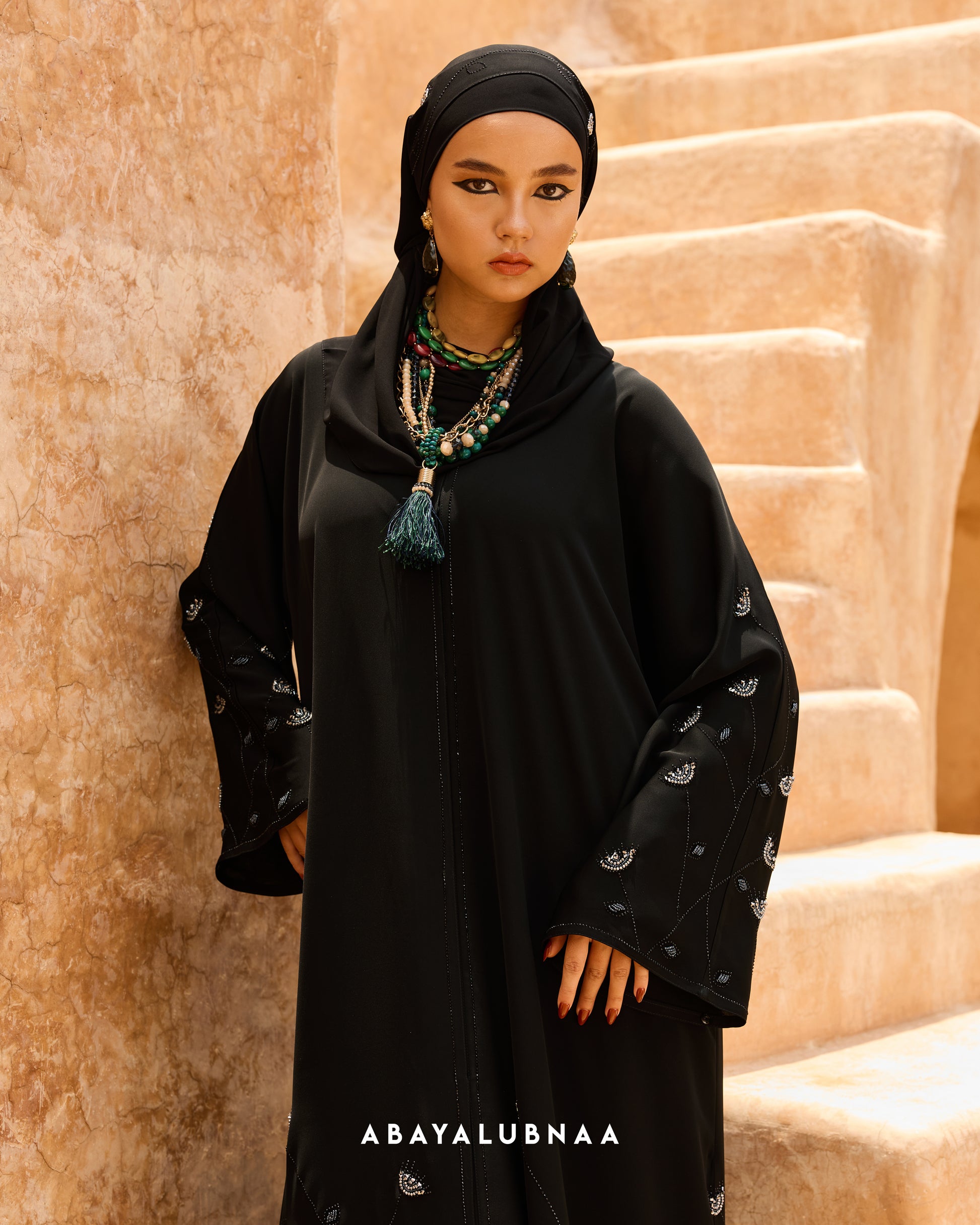 Layla is an open type abaya, giving you comfort and fluidity so you can move smoothly with every step. The ideal outfit for hosting, impart a gorgeous and confident personality in Layla as you entertain guests at your Raya open house.