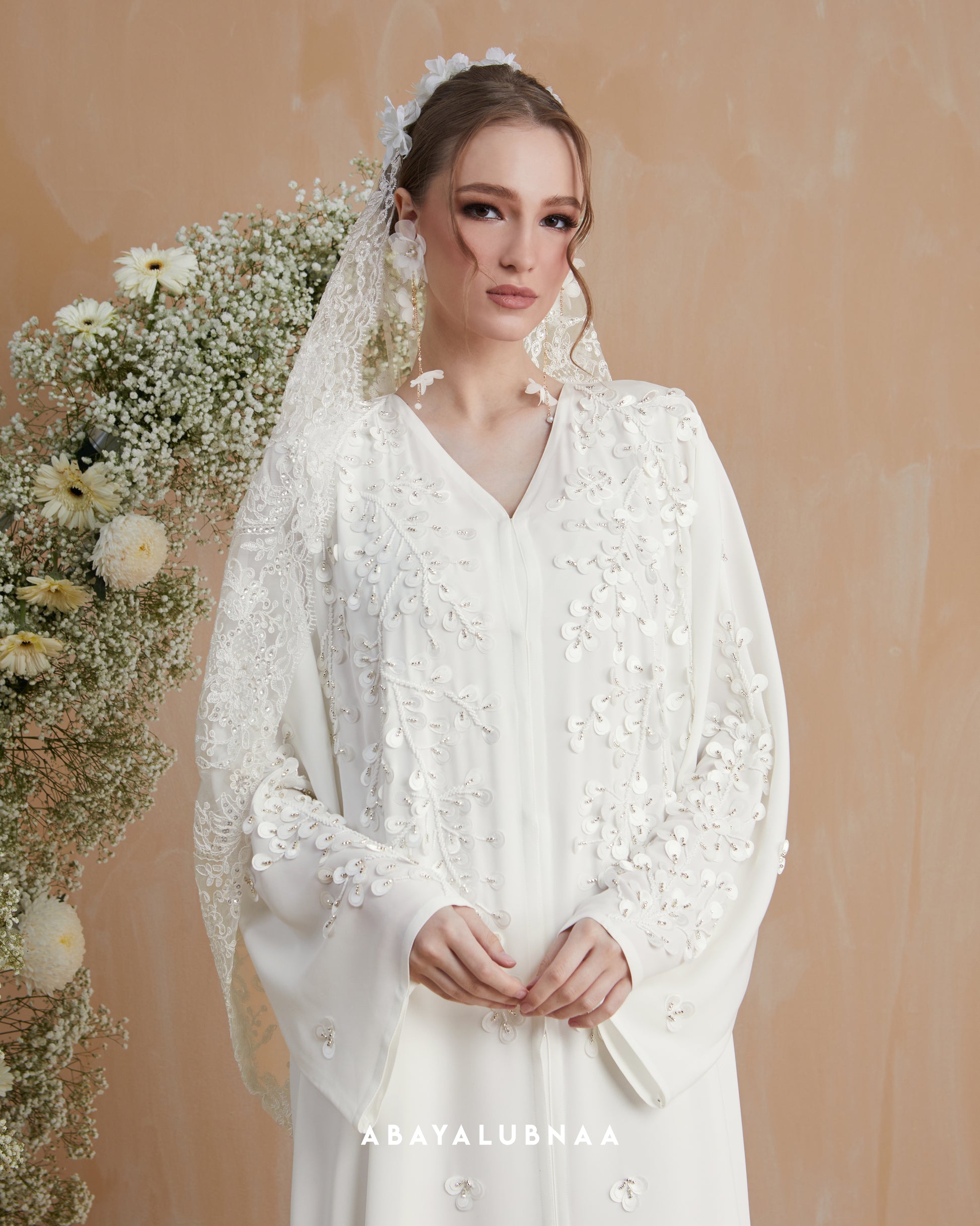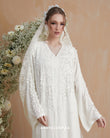 Begin your bridal journey in the dainty Primrose, decked richly in petals cascading from the shoulders to the front, an enchanting sight for everyone that sets their eyes on you.
