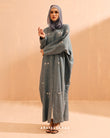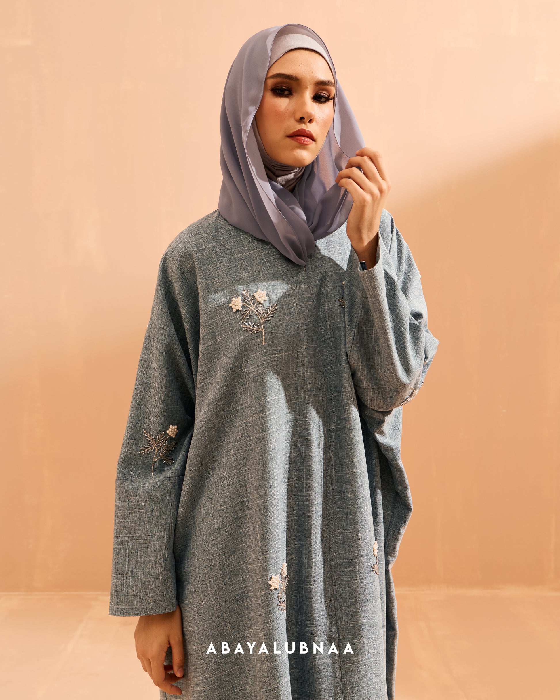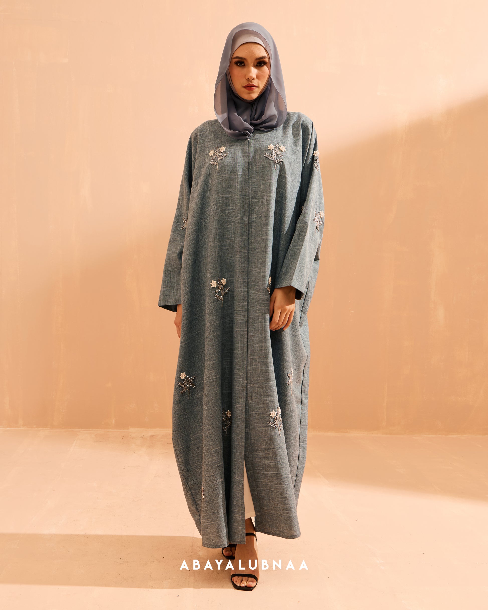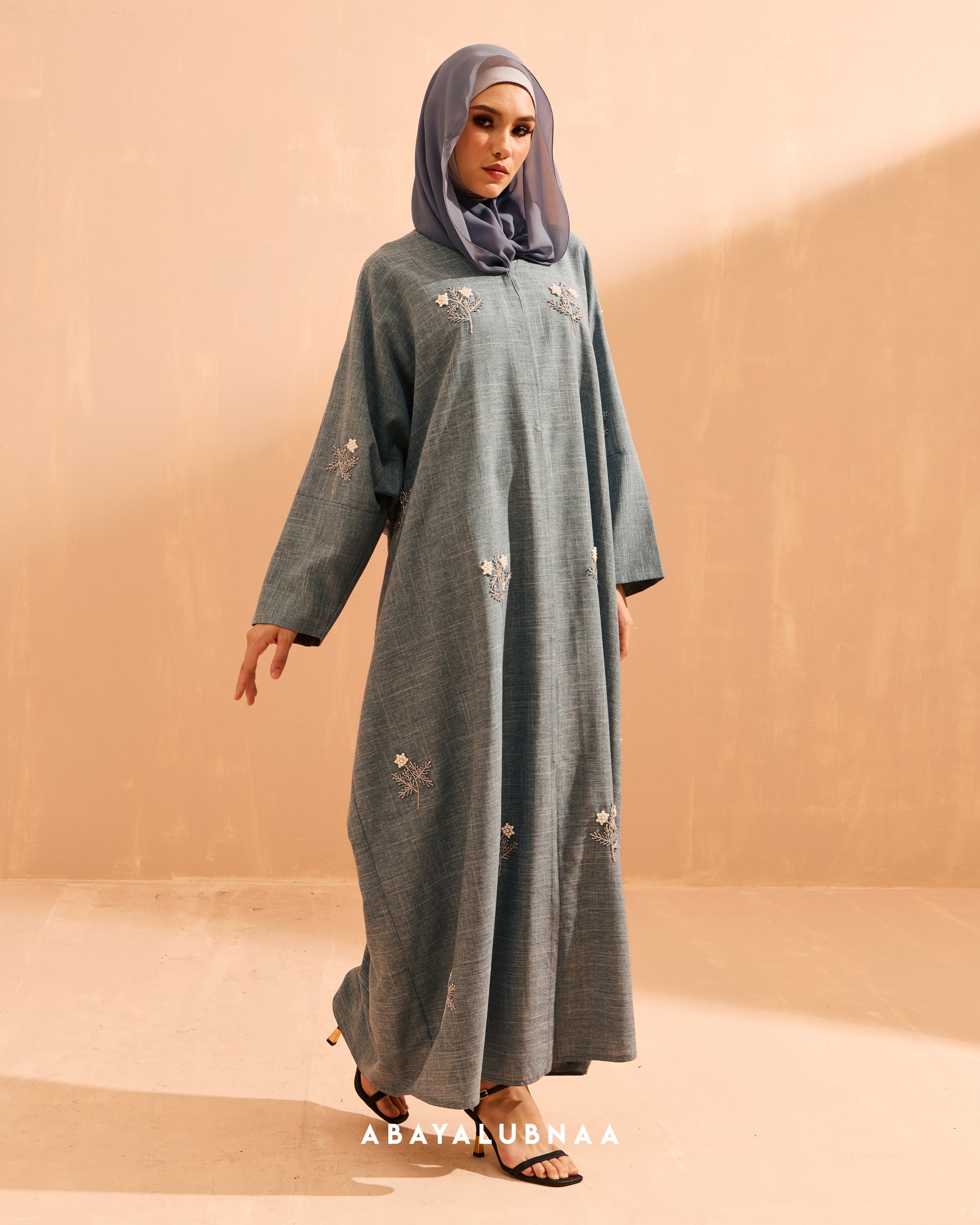 Comfort and modesty go hand in hand with Tiara. A batwing abaya in airy blended linen, Tiara is decorated with pearl flowers and beaded stalks popping abundantly across the abaya.